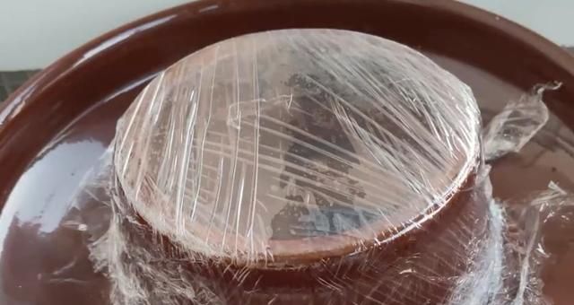刚开始几天,每天要勤搅拌,多观察,防止发酵过程中水溢出来。慢慢的酒缸中发酵的气泡变得越来越大,再反复搅拌一星期左右,表面会变成密集的小泡泡,糯米不再漂浮在表面,这时用保鲜膜将酒缸口密封好,再用盖子盖住,放在阴凉处发酵45天左右。